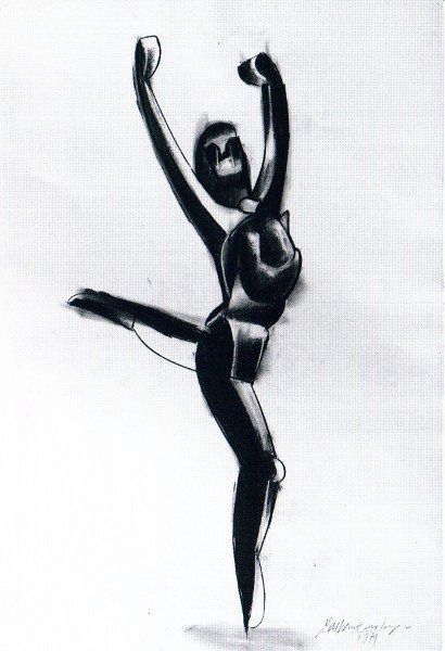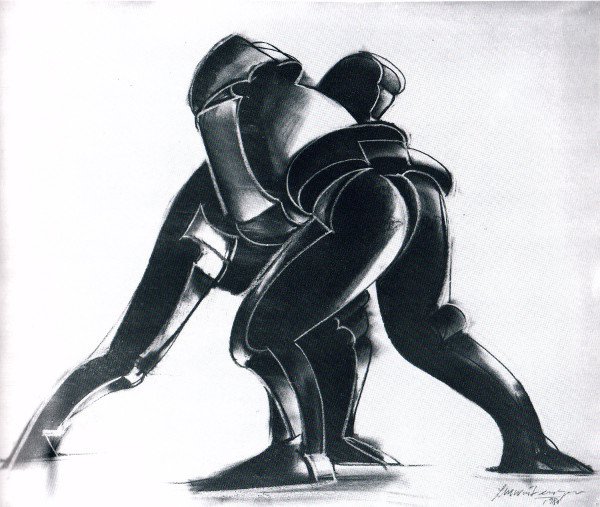 Ringer, 1981, Kohle auf Papier, 50 x 64 cm