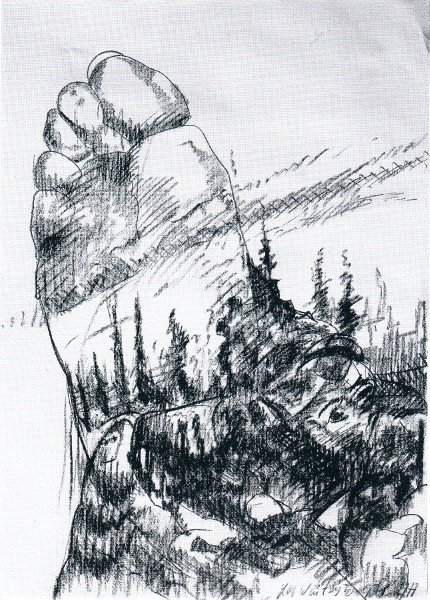 Hand, 1980, Kohle auf Papier, 50 x 70 cm