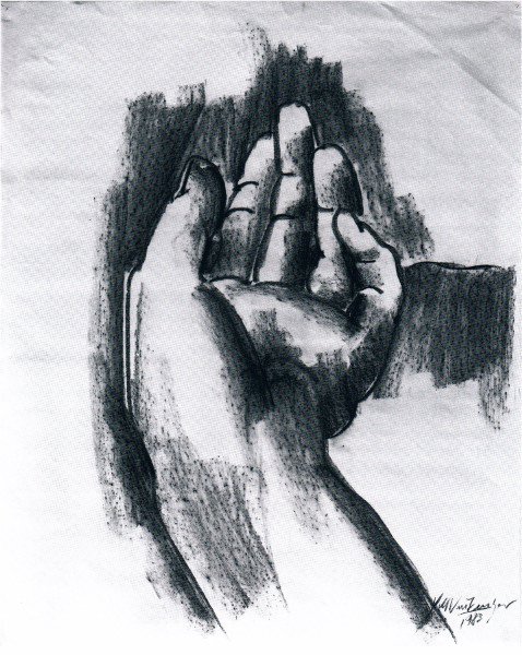 Handstudie, 1983, Kohle auf Papier, 64 x 50 cm
