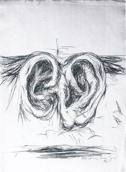Doppelohr, 1972, Kohle auf Papier, 64 x 50 cm